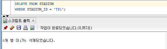 ex) DELETE PLAYER; 또는 DELETE FROM PLAYER;