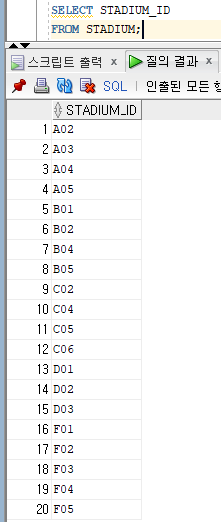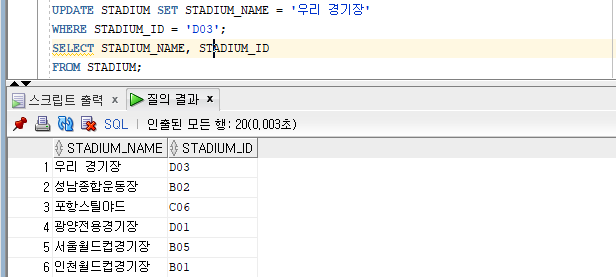 UPDATE STADIUM SET STADIUM_NAME = '우리 경기장'