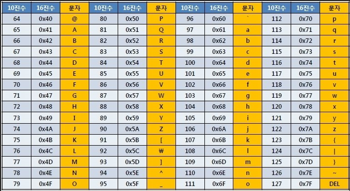 ASCII 코드표(아스키코드)