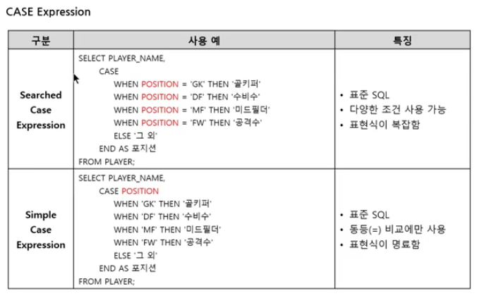 "WHEN 이 먼저 나오면 Searched Case Expression 변수가 먼저 나오면 Simple Case Expression"