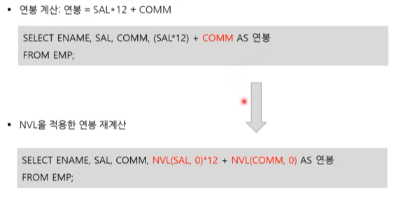 - NULL을 포함하는 모든 산술 연산의 결과는 NULL