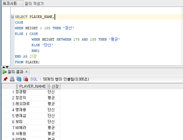 SELECT PLAYER_NAME, LENGTH(PLAYER_NAME) AS 길이