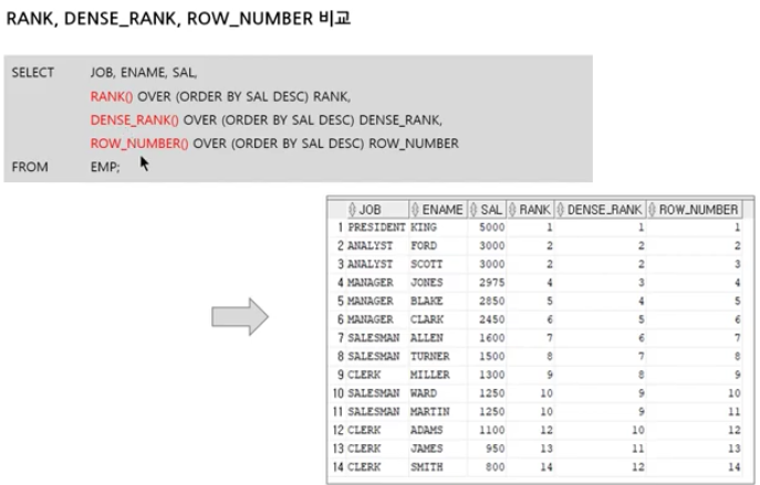 RANK() OVER (ODER BY SAL DESC) AS ALL_RANK,