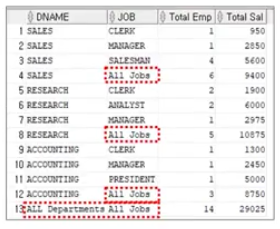 GROUP BY ROLLUP (DNAME, JOB);